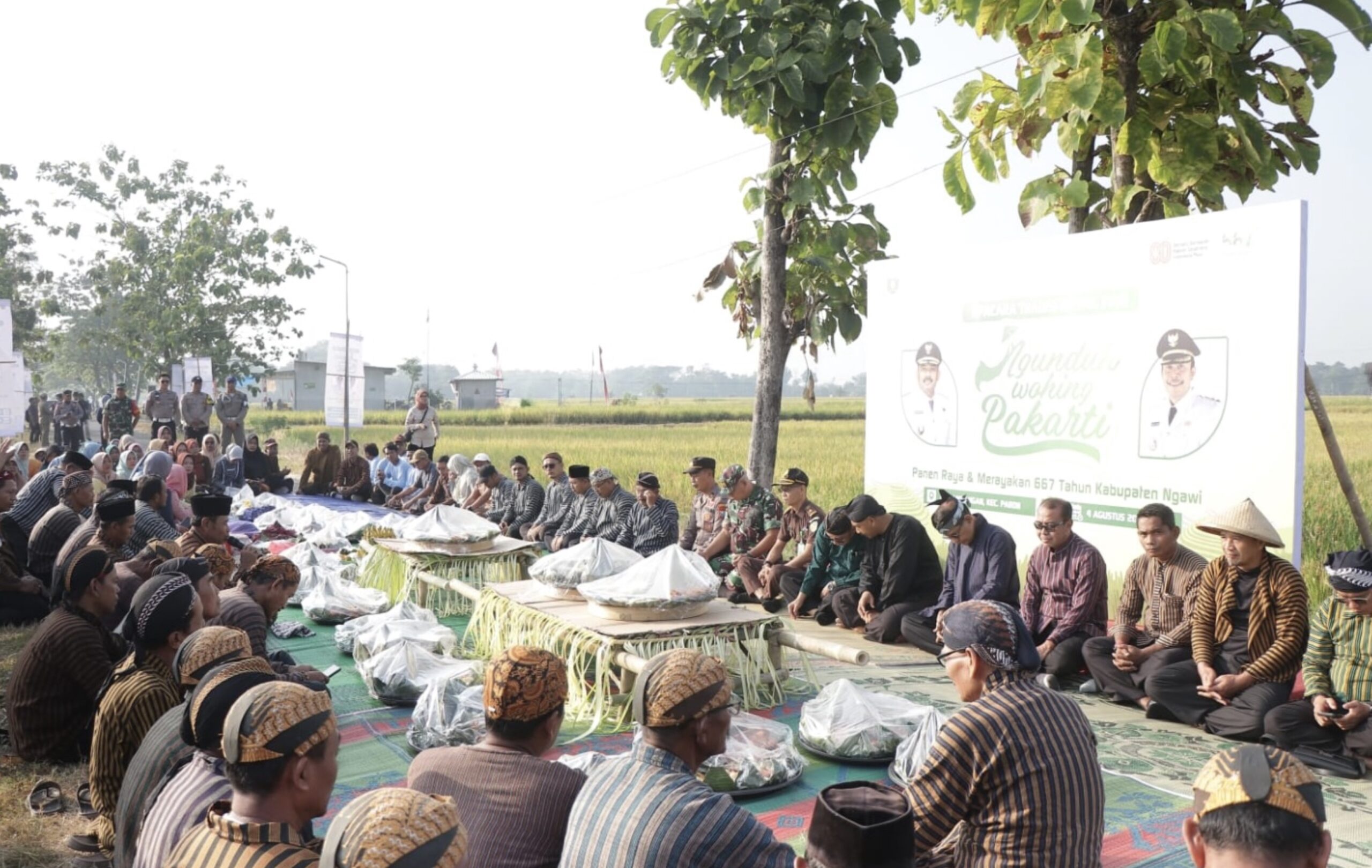 Dengan mengusung tema “Ngunduh Wahing Pakarti”, kegiatan ini tak sekadar seremonial tahunan, tapi juga menjadi ruang untuk merekatkan nilai-nilai gotong royong, kebersamaan, dan penghargaan terhadap alam. Acara tersebut dihadiri langsung oleh Bupati Ngawi Ony Anwar Harsono, didampingi Sekretaris Daerah Mokh. Sodiq Triwidiyanto, jajaran Forkopimda, kepala perangkat daerah, serta perwakilan dari Gabungan Kelompok Tani (Gapoktan) se-Kabupaten Ngawi.